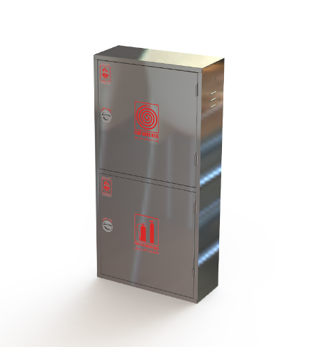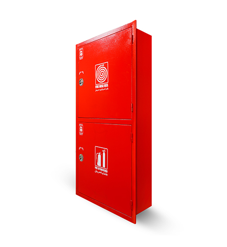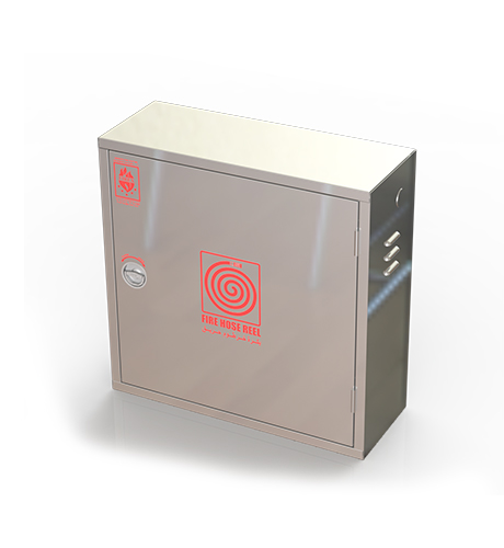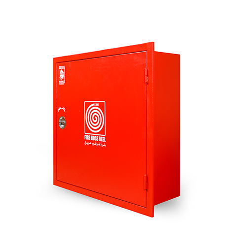 FIREX single door cabinet used for manual and automatic hose reel, FIREX cabinets are made from mild steel with the sheet thickness of 1.0 mm or as per the customer request. The outer edge of the hose reels is rolled over for safe handling and aesthetic appearance. The lock mechanism is either lock type, key type or turn handle. FIREX cabinets are designed to accommodate fire hose reel manual Or Automatic with isolating valve. FIREX cabinet has LPCB, BSI and Civil defense approval.