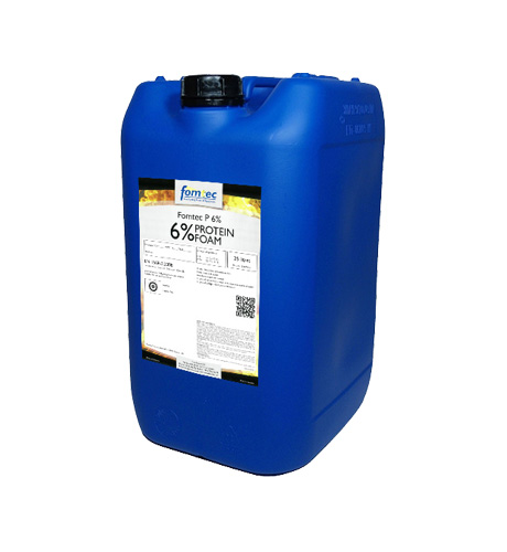 Fomtec P 6% is protein foam produced from a carefully controlled blend of hydrolised protein, foam boosters, stabilisers and preservatives. This ensures the production of stabilised fluid foam. Foam produced by foam making equipment is tough, stable, heat resistant and covers the burning hydrocarbon fuel surface rapidly. Once fire extinction has been achieved the high stability of the foam blanket ensures against the risk of re-ignition and provides excellent protection against 'burn-back' should any inaccessible pockets of fire remain.